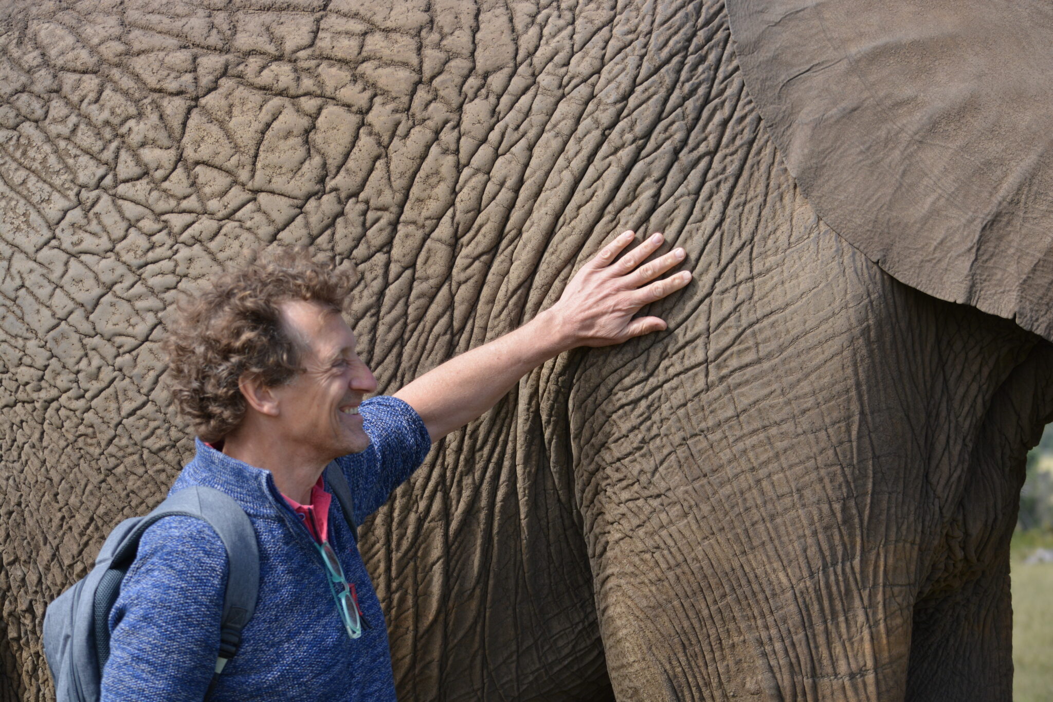 In Knysna Elephant park worden weesolifanten opgevangen en later als ze groter zijn, worden ze weer terug gezet in de natuur of soms bij een kudde geplaatst in Addo Elephant park. Wat leuk is aan dit park, is dat je daadwerkelijk dichtbij de olifanten komt. Ze zijn aangeleerd om achter een ijzeren ‘hek’ te gaan staan op het moment dat je ze grote stukken fruit en groente geeft. Zodat ze je in hun enthousiasme niet opzij kunnen duwen. Zorgvuldig en snel pakten ze met hun slurf wat je op je hand aanbiedt. Daarna liepen we met hen mee het veld in. En een gids hield in de gaten of we een stap opzij moesten zetten, om ongelukken te voorkomen. Het was echt een bijzondere ontmoeting. De olifanten bepaalden min of meer wat er aan contact met ons plaats kon vinden en niet andersom.